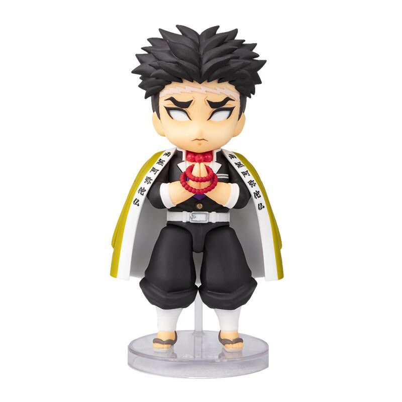 A figura de Gyomei Himejima possui 10 centímetros de altura, tornando-a uma peça compacta e cheia de detalhes para sua coleção de Demon Slayer.